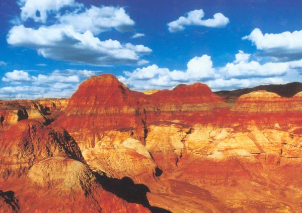 - The Flaming Mountain (30 minutes): The Flaming Mountains, the hottest place in China, overshadow the cradle of the Turpan ancient civilization and oasis agriculture. They provide a spectacular backdrop to the oases and scenery of the Turpan area, and have given rise to many legends and stories, such as the classic "Journey to the West". There are stone reliefs showing the monkey king Sun Wukong, the monk Tang Sen and the pig-man Zhu Bajie and their adventures in an underground cavern built at the foot of the Flaming Mountains to introduce its culture to visitors. The view of the Flaming Mountains depends heavily on the weather condition, especially temperature. The period from August to October is the best time to visit, also during noon time at around 3 o'clock the Flaming Mountains take on the reddest color.